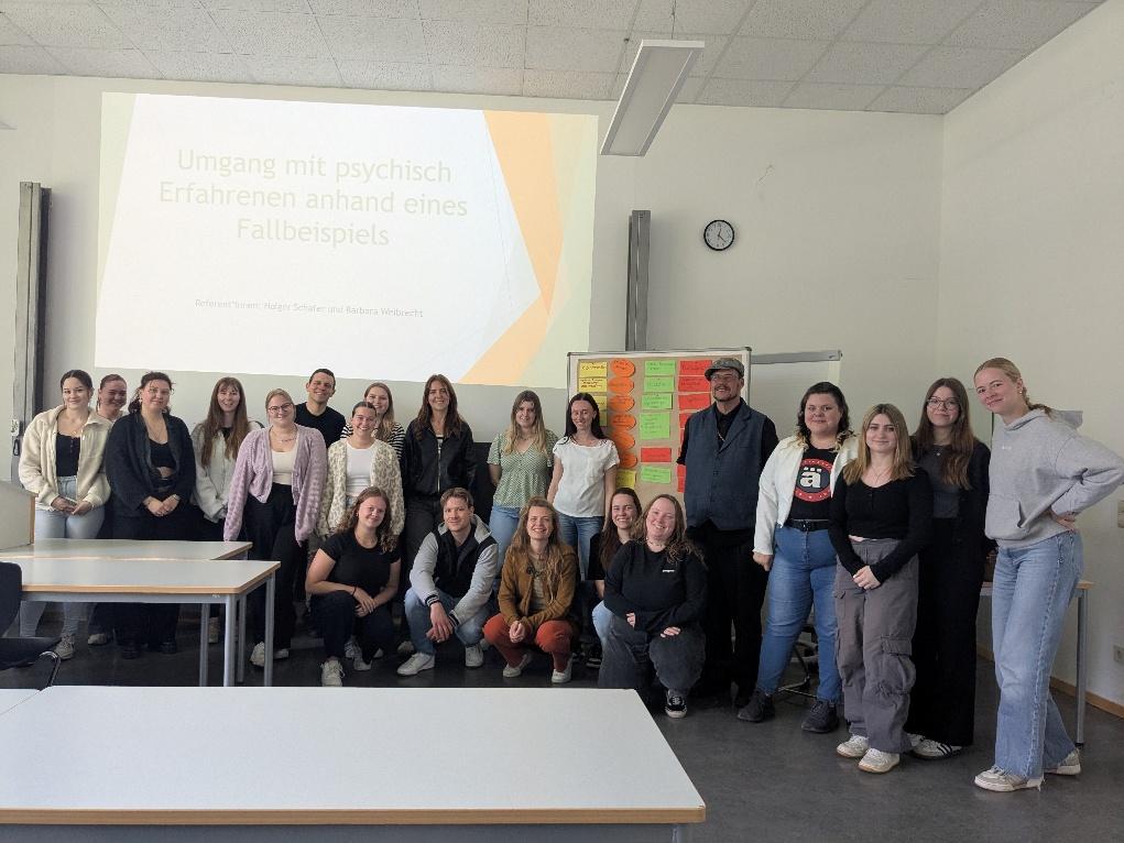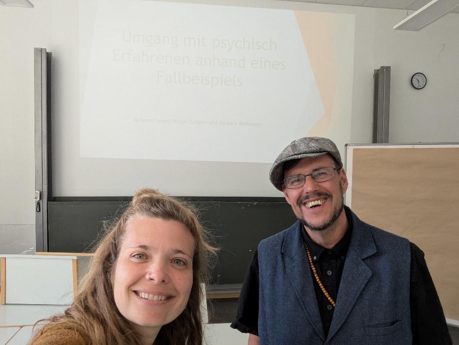 Barbara Weibrecht (Paritäter Konstanz-Soziale Arbeit) und Holger Schäfer gaben eine Vorlesung an der Dualen Hochschule für Soziale Arbeit in Villingen-Schwenningen. Das Thema lautete: „Umgang mit psychisch Erfahrenen am Fallbeispiel“. Es war ein spannender Kurs, denn das Thema wurde gehört. Es hat uns sehr viel Spaß gemacht.